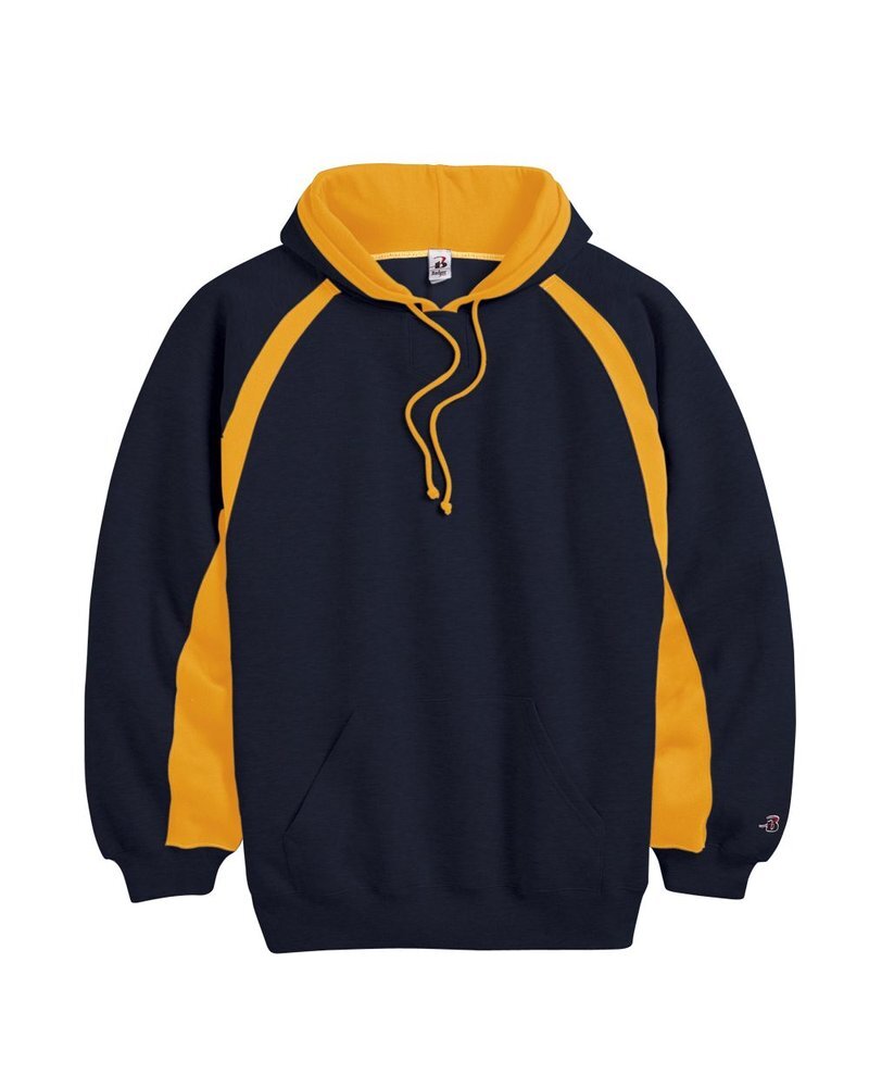 Athletic cut hoodie stands out on the field with contrast color underarm panels and shoulder inserts.
