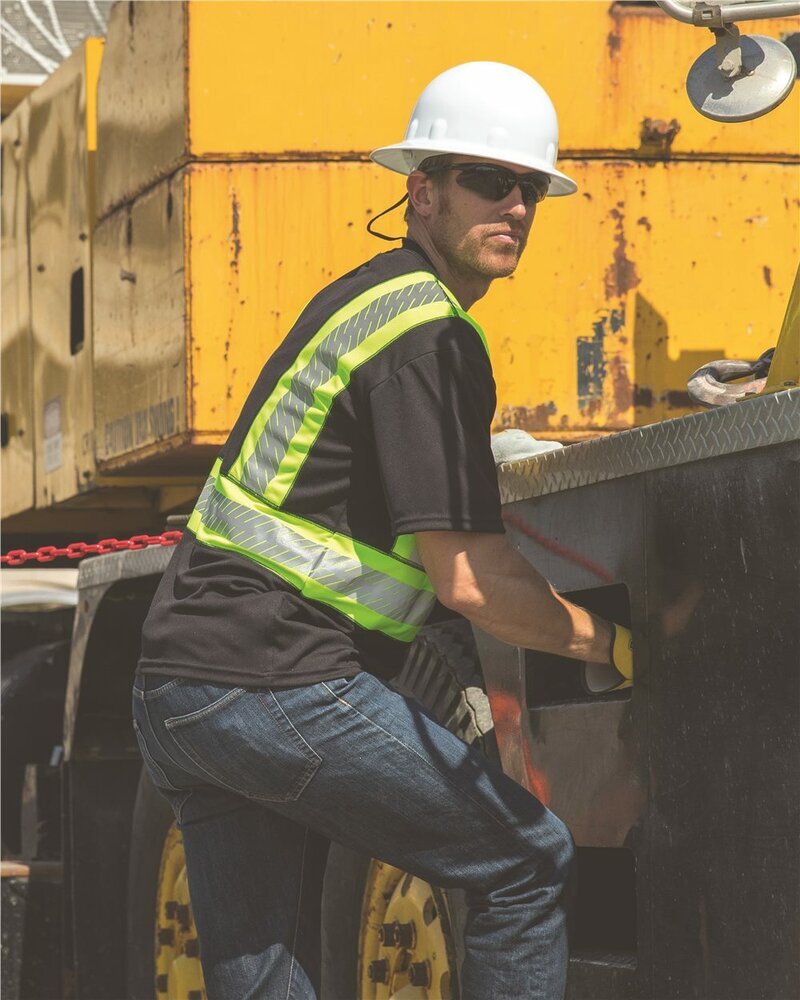 - Flat-stitched high-visibility contrast panels enhance daytime visibility and significantly improves comfort and coolness over layered contrasting panels