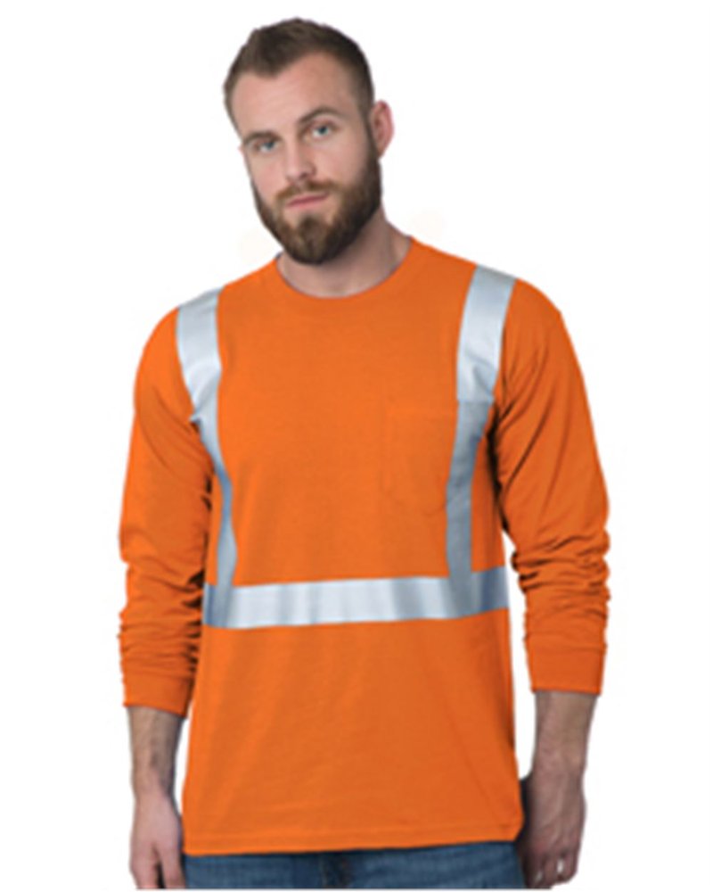 Bayside Unisex USA-Made 50/50 Hi-Visibility Long Sleeve Pocket T-Shirt 3782