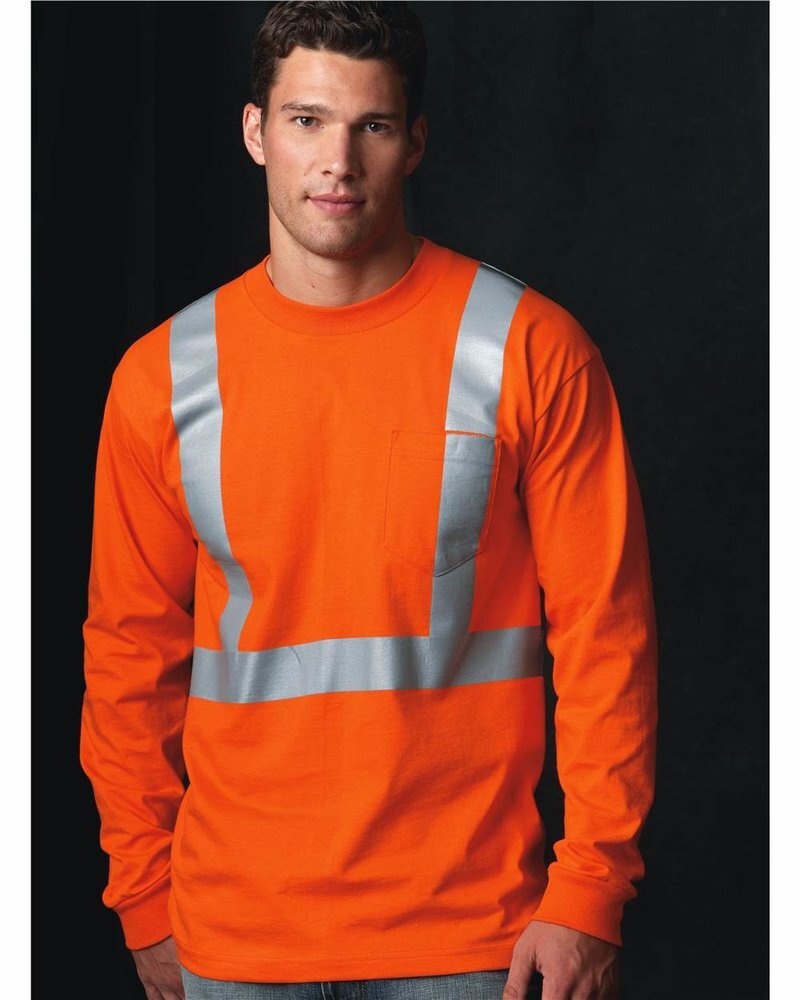 Bayside Unisex USA-Made High Visibility Long Sleeve Pocket T-Shirt 3781