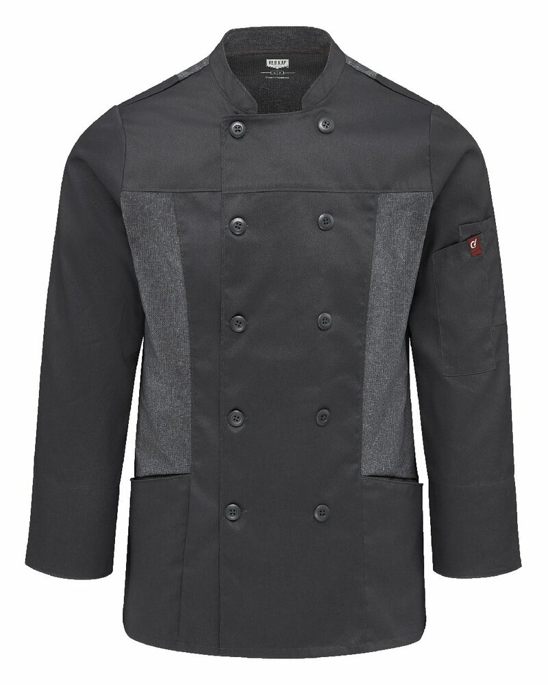 - Two angled front hip pockets and dual utensil/thermometer pockets on left sleeve
