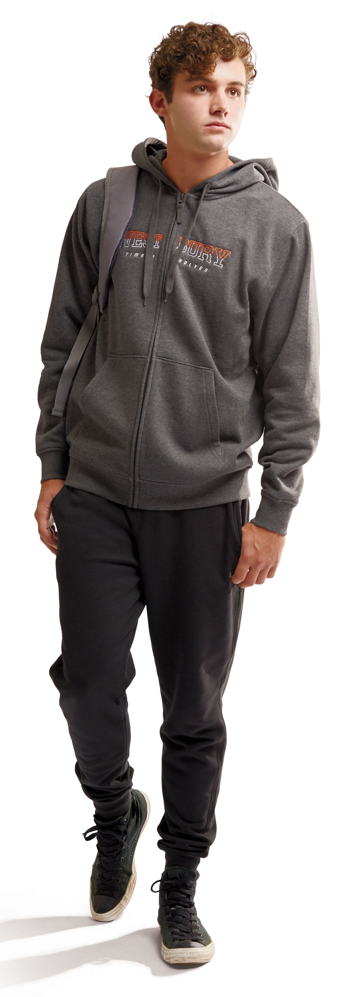 9 ounce 60% cotton/40% polyester athletic fleece * Woven label * Rib-knit waistband and bottom cuffs * 1/2" cotton braided drawcord on outside waistband (inside drawcord on sizes XS-S) * Side seam pockets * Back patch pocket * Tapered leg