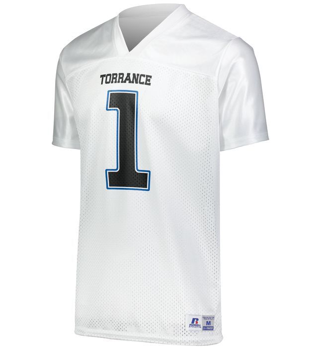 * 100% nylon (colors), 100% polyester tricot mesh (white) * 73 cloth yoke for added durability in contact area * Outside locker label * V-neck collar * Side vents * Not to be worn with pads * Set-in sleeves