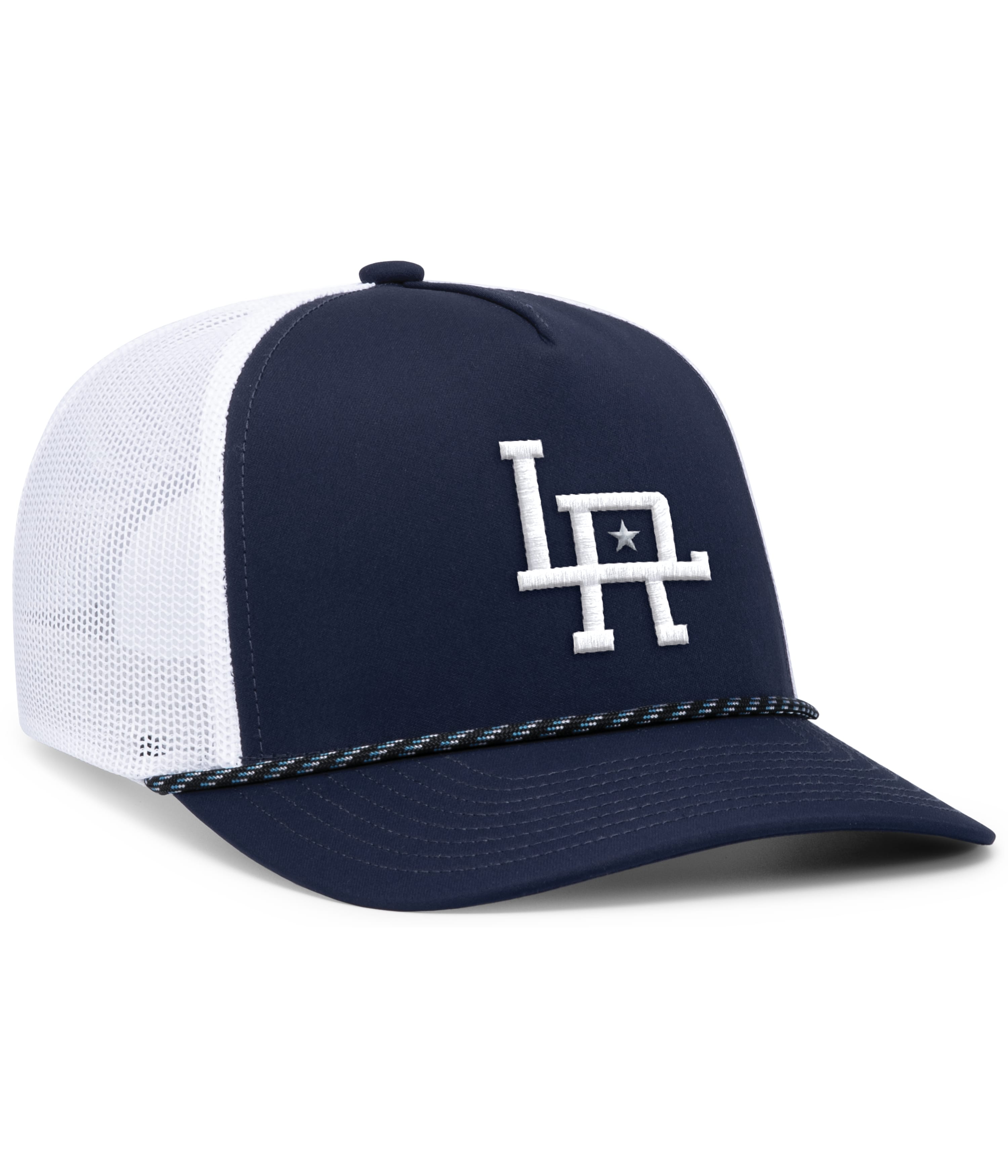 * Polyester/spandex woven * Trucker mesh * Mid-profile * 5-panel * Slight curved visor * Pro-stitched finish * Contrast color cording * Snapback adjustable