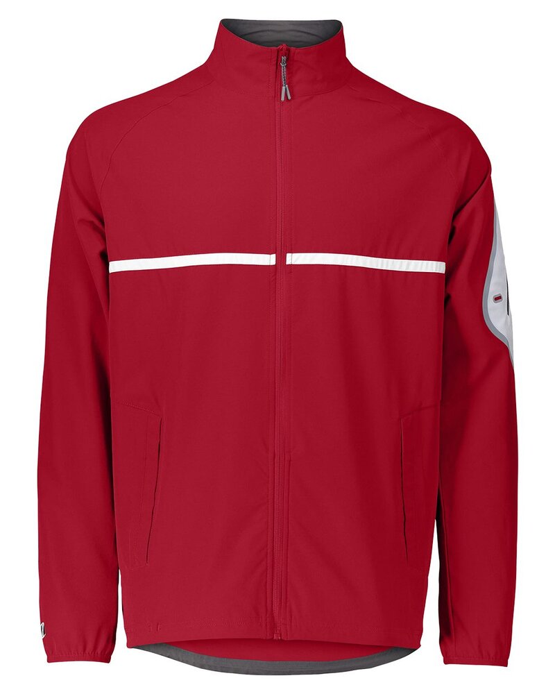 - Contrast-color sleeve pocket with silver media port and reflective metallic silicone welded zipper