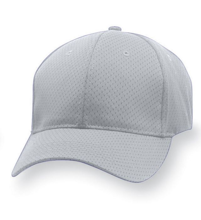 * 100% polyester athletic mesh with tricot backing * Low-Profile * Pro-model * Gray undervisor * Closed back